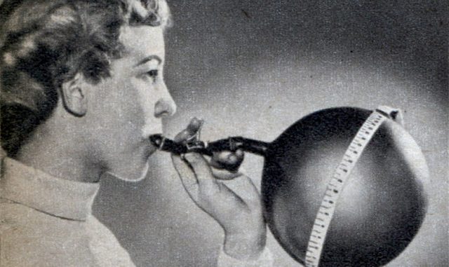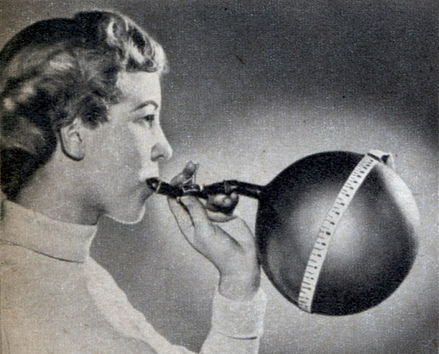 Breathing Balloon for Big Breasts, 1949 August 30, 2022 Vintage Everyday 1940s, beauty, female, inventions 0 This post was originally published on this site Breathing Balloon will develop your form, if that’s what you want. It’ll also train you to breathe deeply by measuring your lung capacity by means of the shut-off valve. This device was invented in Detroit, Michigan in 1949.