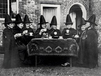 This post was originally published on this siteThis photograph, taken around 1920, shows eight women dressed in black capes and tall, pointed hats, enjoying tea […]