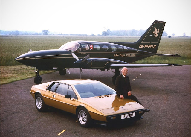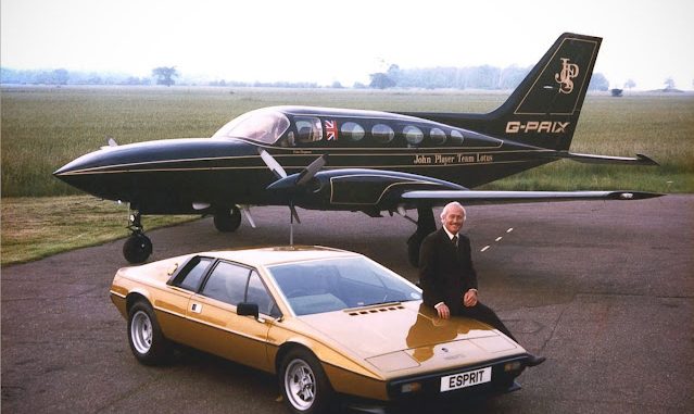 Pictured here is Lotus founder Colin Chapman, a Series 2 Lotus Esprit, and a private plane decked out in Lotus F1’s John Player Special livery. The photo was taken in 1978 or 1979, judging by the car, and well, overall style of the picture.
