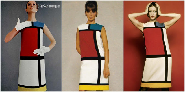 The convergence of fashion and art in the Mondrian dresses is significant. Whilst reflecting the fashionable Western silhouette, the designs also reflect the significance of the work of artists like Mondrian during the sixties. The abstract, geometric visual language of the modernistic Dutch movement De Stijl to which Mondrian belonged was applied to the design of the six dresses.