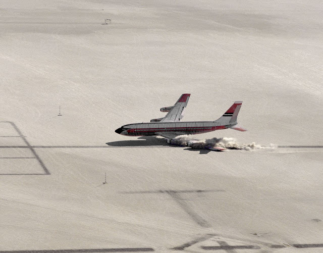 The Controlled Impact Demonstration (or colloquially the Crash In the Desert) was a joint project between NASA and the Federal Aviation Administration (FAA) that intentionally crashed a remotely controlled Boeing 720 aircraft to acquire data and test new technologies that might help passengers and crew survive. The crash required more than four years of preparation by NASA Ames Research Center, Langley Research Center, Dryden Flight Research Center, the FAA, and General Electric. After numerous test runs, the plane was crashed on December 1, 1984. The test went generally according to plan, and produced a spectacular fireball that required more than an hour to extinguish.