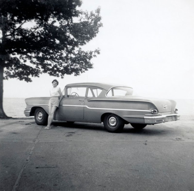 A cool photo collection from Vintage Cars & People shows beautiful ladies in shorts posing with their cars from the 1950s.
