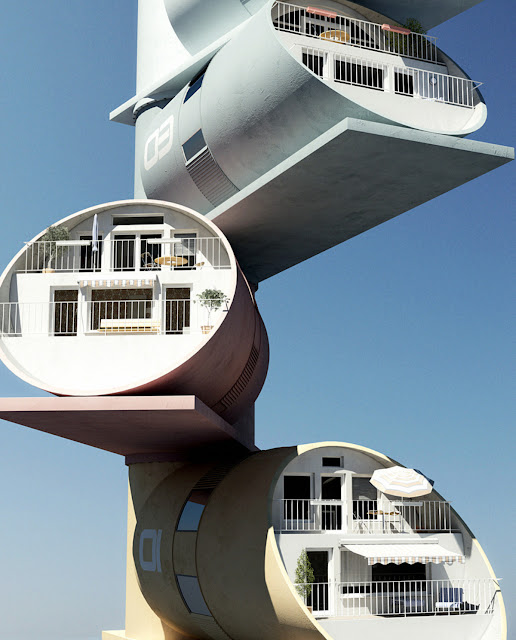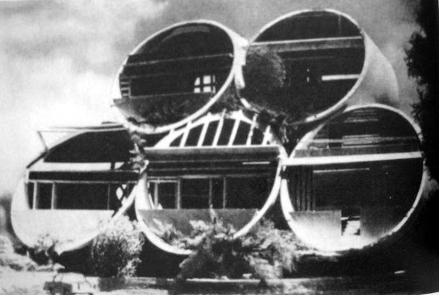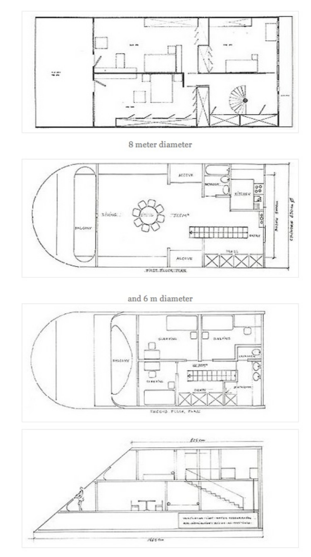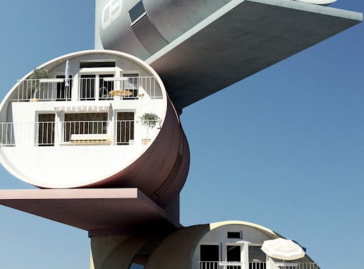 An alternative mode of high rise living, these futuristic homes were dreamed up by the Swiss architect and artist Guy Dessauges in the mid-1960s. The eccentric creator was obsessed with the idea of designing completely cylindrical buildings, inspired by the semi-circular forms of ancient cave dwellings and Roman vaulting.