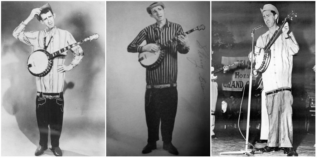 Akeman was well-known for his “old-fashioned” banjo picking style, careful mix of comedy and music, and his memorable stage wardrobe (which consisted of a long nightshirt tucked into a pair of short blue jeans belted around his knees–an early form of sagging–giving him the comical appearance of a very tall man with stubby legs).