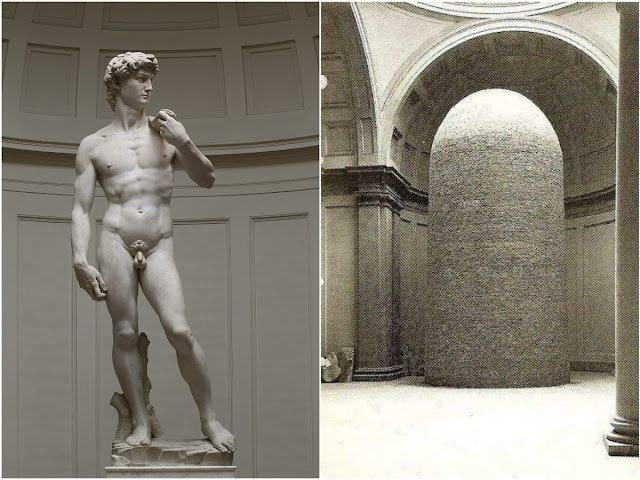 Two and a half years later, preservationist Deane Keller wrote to his wife, “The bright spot yesterday was seeing Michelangelo’s David at length divested of its air raid protection. It was dusty and dirty but it was a great thrill.”