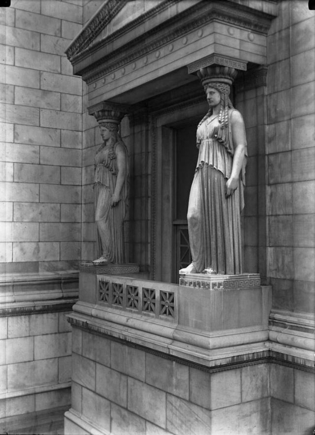 Caryatid statues and porch by Henry Hering, Field Museum of Natural History exterior, 1920