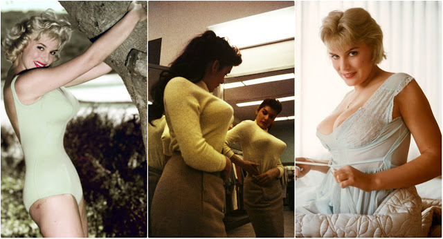 During a promotional tour in the United States, she was discovered by Hugh Hefner. Her first appearance in Playboy, in September 1958, was titled “The Bosom”. She was a brunette in those days, but in later shoots she was a blonde.