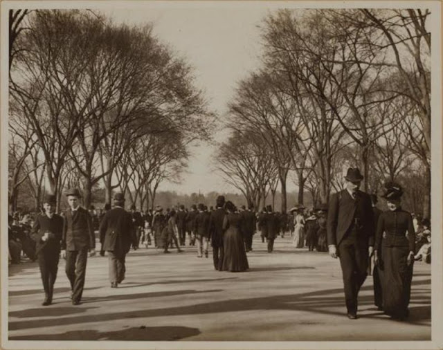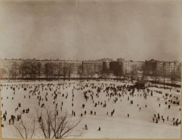 Skating on the frozen pond at 110th Street and the Botanical Gardens in Central Park, 1905