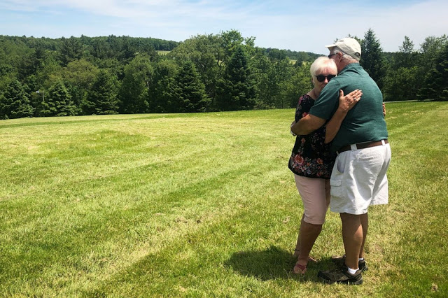 Nick and Bobbi Ercoline, the couple featured on the Woodstock album cover, pose together, at the site where the photo was taken 50 years ago, in Bethel, New York, U.S., June 12, 2019. (Reuters/Dan Fastenberg)