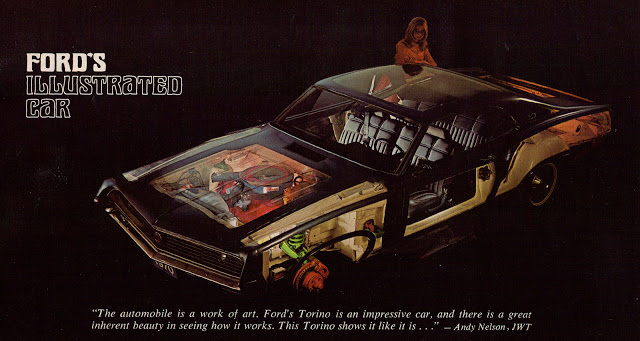 The see-though hardtop was featured in Ford’s 1970 Torino sales catalog and treated to a full spread for Motor Trend (the Torino was the magazine’s Car of the Year for 1970). The Torino also starred in a 1970 Ford television commercial, demonstrating in action shots that despite the presumably flimsy body panels, it was fully functional and roadworthy. At some point, the car was updated to 1971 exterior trim, and it also appears as a ’71 in the ’71 Torino sales literature.