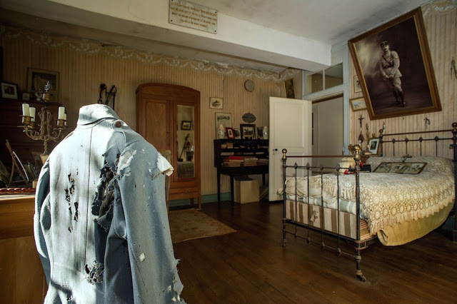 His parents had no idea where he was buried until 1922 when his body was discovered in a British cemetery and repatriated to the graveyard at Bélâbre, France. They turned the room into a permanent memorial, leaving it largely as it had been the day he went off to war.