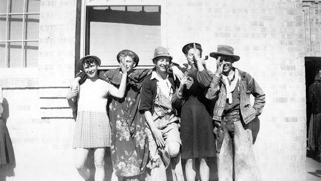Texas native Ottis Littlejohn joined the Civilian Conservation Corps after he graduated high school in 1941, and was stationed with the roadbuilding crew at Colorado National Monument. He befriended several local people while he was here, including his sweetheart and a fellow he refers to as “Red” McCormick. Littlejohn either took these snapshots of McCormick and his classmates goofing around in costumes during graduation week, or he acquired them from him.
