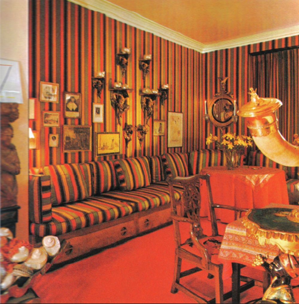 “I knew what that meant: red,” the designer wrote in his 1974 memoir, Billy Baldwin Remembers. “I raced home with yards and yards of it, and we covered the whole room – walls, curtains, furniture, the works.”