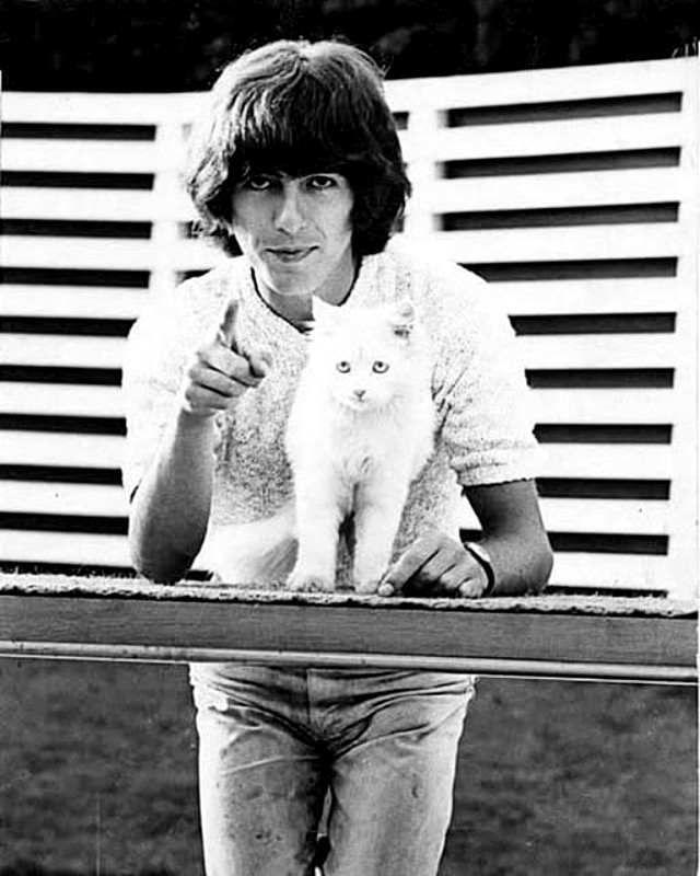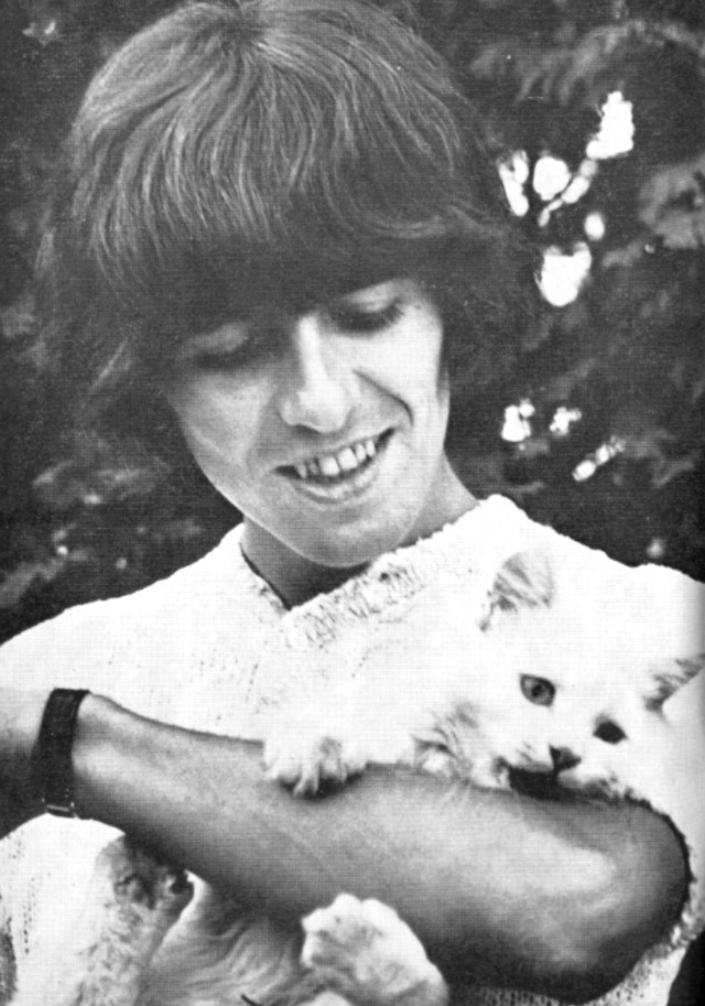 Q: “There’s a great photo on the cover of The Beatles Monthly magazine of George with a white cat…”