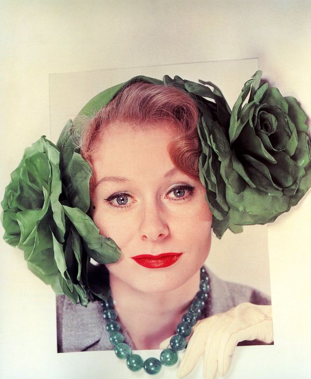Nina de Voogt in “Hat with a Green Rose”, hat by John Frederics, photo by Erwin Blumenfeld, New York, 1952