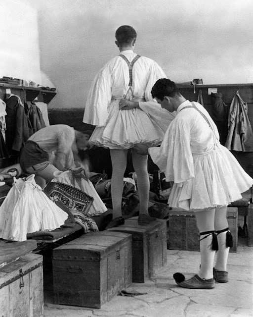 Evzones are known for their distinctive uniform, which evolved from the clothes worn by the klephts who fought the Ottoman occupation of Greece. The most visible item of this uniform is the fustanella, a kilt-like garment. Their distinctive dress turned them into a popular image for the Greek soldier, especially among foreigners.