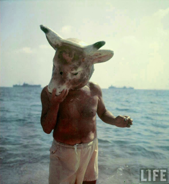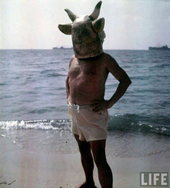 In 1949, photographer Gjon Mili first visited Picasso at Vallauris, in the South of France and took a series of portraits of the artist in minotaur mask on the beach. According to LIFE, Picasso made paper cut-outs, then had the patterns transferred to sheet metal which he folded into animals with lively personalities, turning his paper-thin material into surprisingly substantial works of art.
