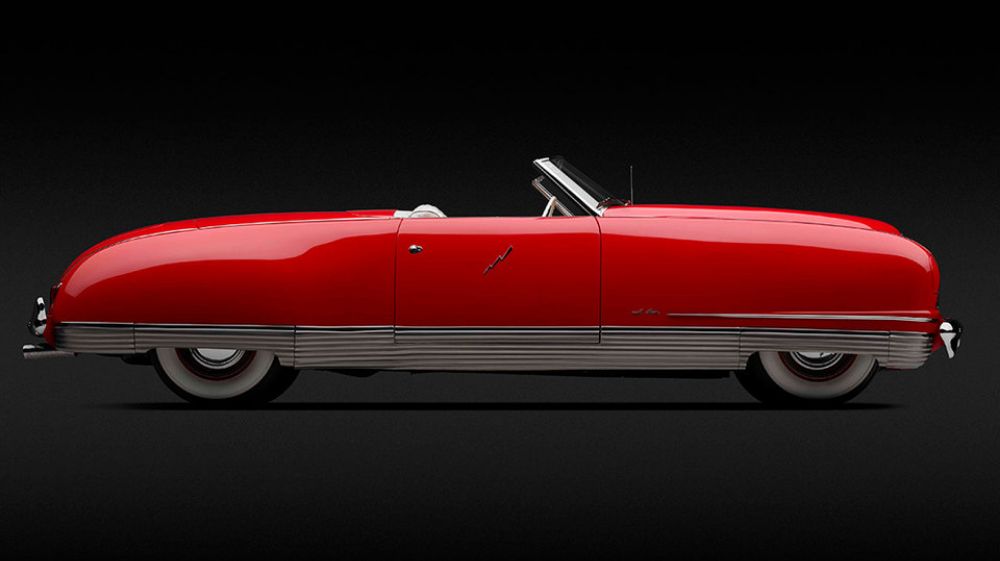 The curves on the 1941 Chrysler Thunderbolt were inspired by streamliner trains. The car was among the first to have power windows — Chrysler used hydraulic motors to move them. The fully retractable hardtop and button-operated pop-open headlights were also seminal design features that showed up in cars decades later. It was one of the last Art Deco designs before concepts leaned towards futuristic aesthetics.