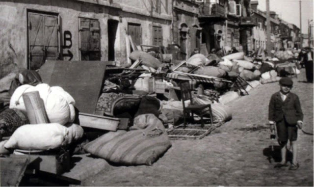 Historian Julia Werner discovered this set of photos in the Jewish Museum in Rendsburg, Germany, and they constitute one of the only visual records we have of the construction of an open-air ghetto. Taken on June 16, 1940, by German soldier Wilhelm Hansen, the photographs track the forced movement of the Jewish population of Kutno, Poland, from their homes to the grounds of an abandoned sugar factory, where they were ordered to set up camp.
