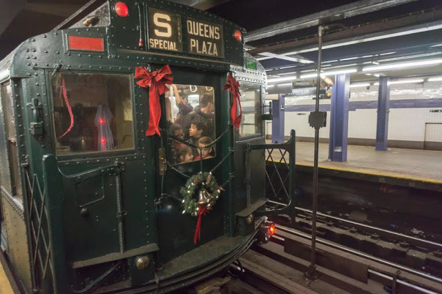 The Holiday Nostalgia Train is made up of subway cars in service from 1932 until 1977. Three of the subway trains, from the 1930s, usually reside in the Brooklyn-based NY Transit Museum, which takes them out on a special-occasion-only basis.