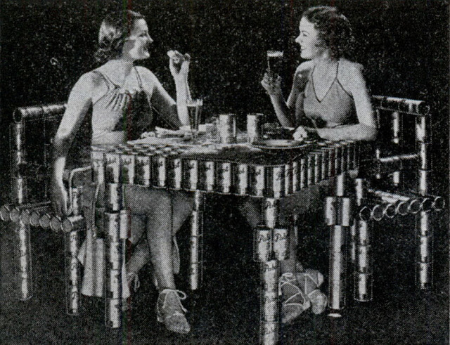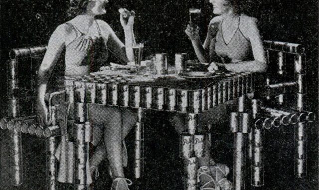 Home-Made Metal Furniture From Beer Cans, 1936 June 13, 2023 Vintage Everyday 1930s, humor & hilarious, inventions 0 This post was originally published on this site 420 cans soldered together produced the garden furniture shown in use below. Bernard Dier of Chicago made it in ten days in 1936. Collecting the material for this furniture is a pleasure.