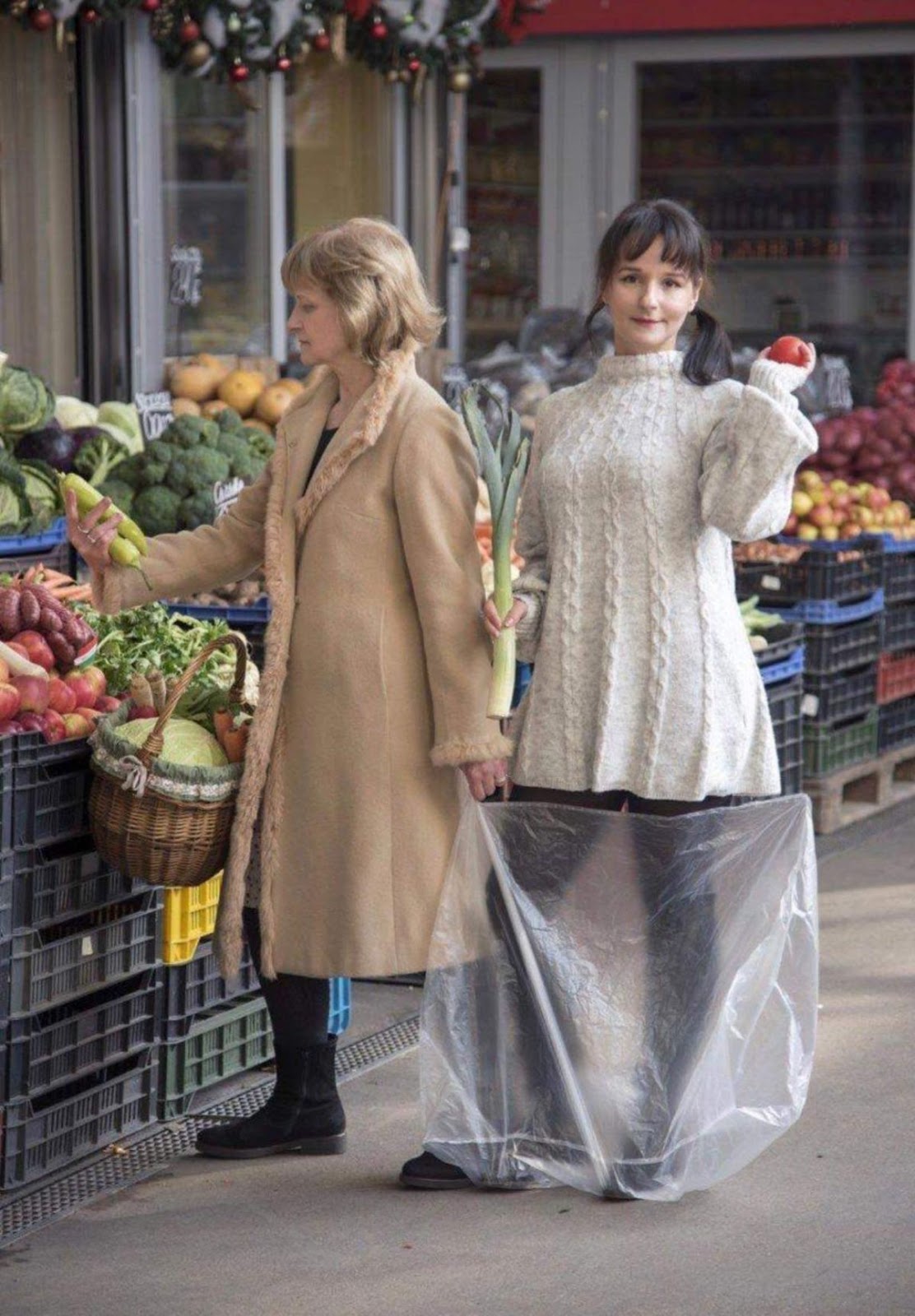 According to the photographer, whose wife and daughter are on the viral photo, the original photo was taken on Museum Boulevard in Budapest, where they were living at the time. And the new version was taken in the Budafok market with the same protagonists — Marti and her daughter Eniko.