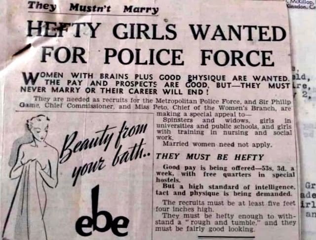 In the 1940s, London’s Metropolitan Police force was looking for fairly good looking female officers, and they must be hefty enough to withstand a “rough and tumble.”