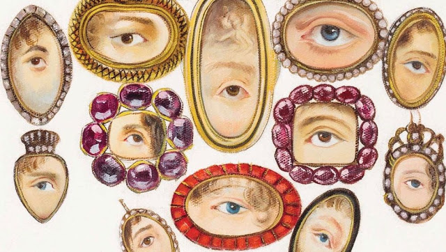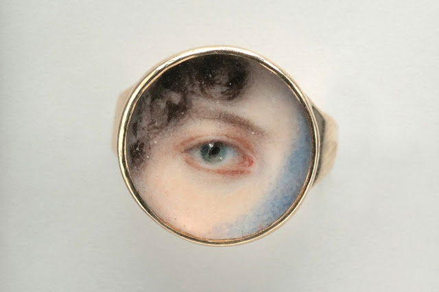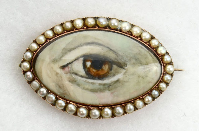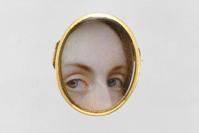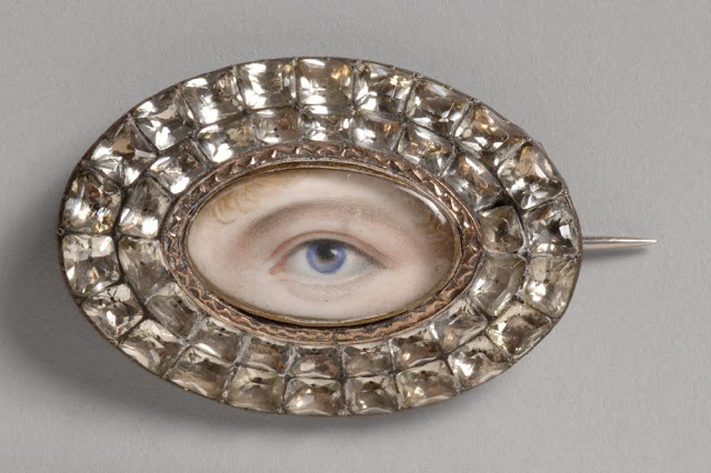 While miniature portraits were already popular in 18th-century England, they were often private objects viewed solely by the wearer. Yet an eye portrait could be worn boldly on a bracelet, ring, stickpin, pendant, or brooch, with the identity of the subject a mystery.