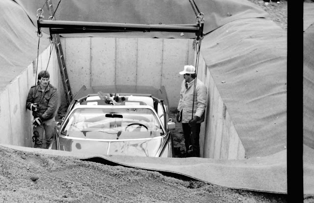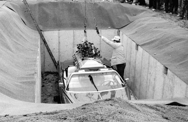 In 1989, Aurora lost her fight against cancer at the age of 62. Her final request was that she wanted to be buried not only next to her beloved Ray but with her favorite car, the Eldorado. Ray found out pretty fast that you can’t just bury a car with a body in a cemetery. A total of 14 plots had to be purchased and dug. A concrete vault needed to be poured which measured 27 feet by 12 feet and was 6 feet deep before the car prepared for it’s final trip to Riverview Cemetery. The car sparkled from the beautiful wax job. Before the funeral, Ray said he was going to fill the gas tank so Aurora could ride around. Well not really. The gas tank was removed and the car made ready for internment.