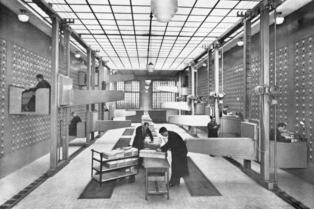 These amazing photographs below show men working in mobile work stations used to access the card catalog drawers in the Central Social Institution, Prague, Czechoslovakia (now Czech Republic) in 1937.