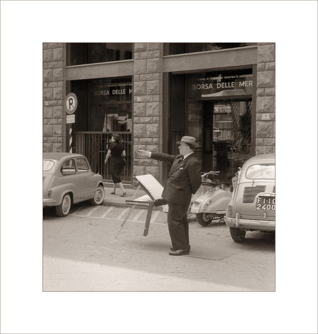 A weekend hobby being practiced in a Florentine street, 1958-59
