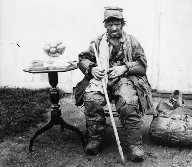 It is unknown how he earned money. One store kept a record of an order: “one loaf of bread, a can of sardines, one-pound of fancy crackers, a pie, two quarts of coffee, one gill of brandy and a bottle of beer.”