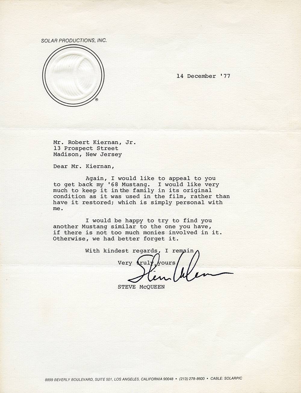 Steve McQueen’s last plea to buy the Bullitt Mustang in 1977. |