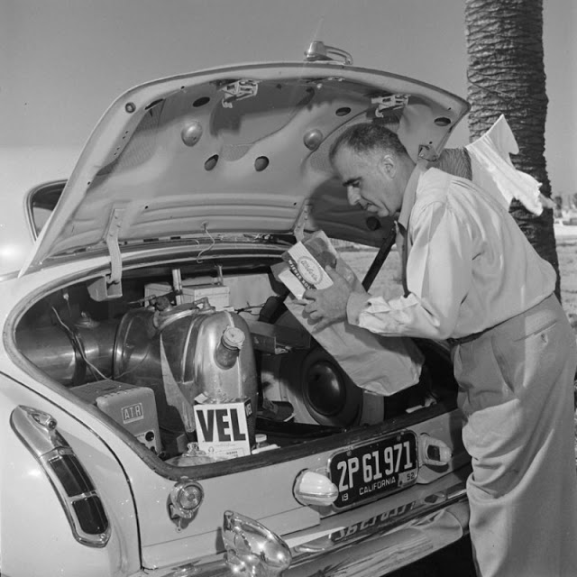 Louie Mattar, a San Diego garage owner with a big imagination, who turned his 1947 Cadillac into a how-to guide for four-wheeled DIYers everywhere. When he bought a brand new Cadillac four years ago, the extra equipment his dealer offered was not enough and Mattar started to add a weird assortment of things that other motorists can only dream of.