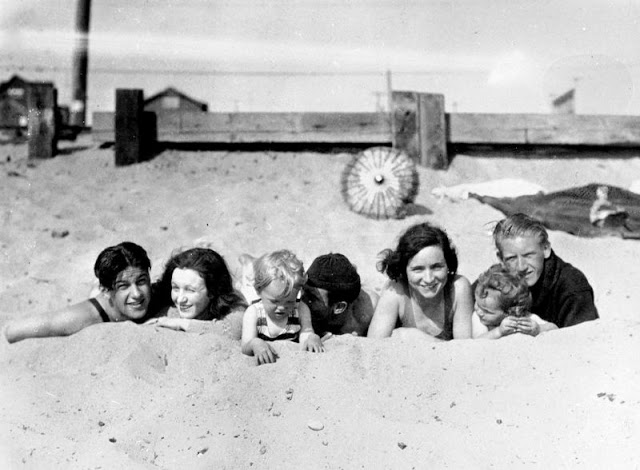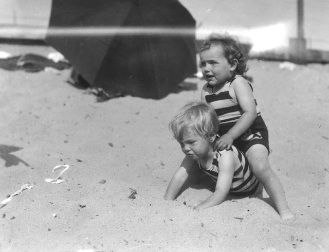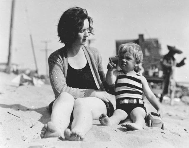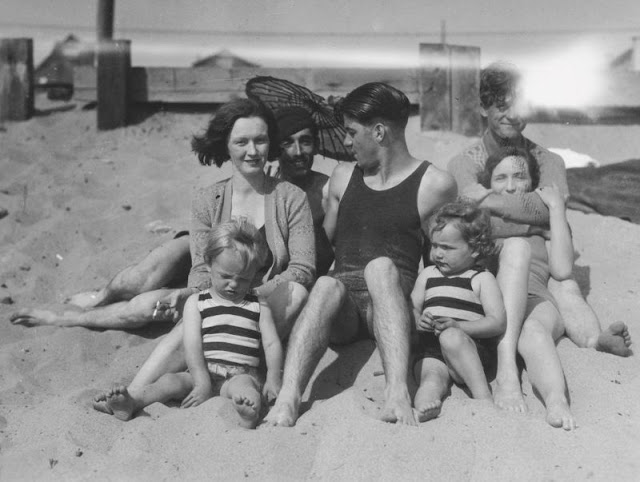 A set of lovely vintage photos that shows a three-year-old Norma Jeane Baker (Marilyn Monroe) on the beach with her mother Gladys Baker and a group of friends in 1929.