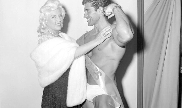 Actress Mae West, who always had a good eye for men, chose Reg Lewis as “Mr. Hercules,” in a contest held at the Bert Goodrich Gym in Hollywood on May 25, 1958.