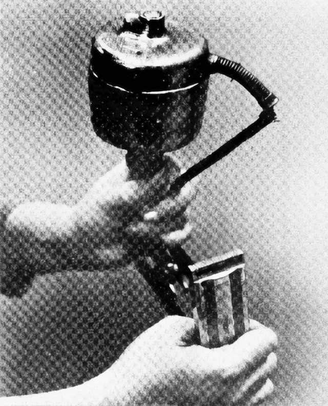 | Schick’s earliest prototype for the electric shaver was a bulky, two-handed affair. |