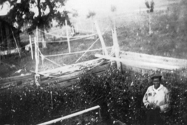 | Mary Fields in her garden in back of her cabin. |