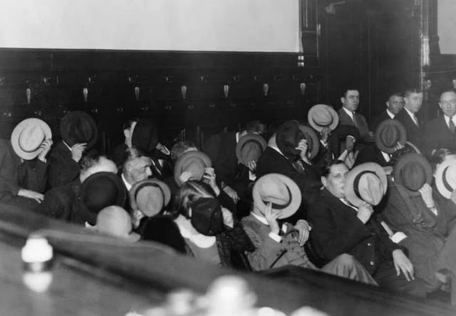 The featured picture depicts numerous mobsters that showed up to Al Capone’s trial in 1931. But when they were photographed, they used their hats to cover their faces so they were unidentifiable.