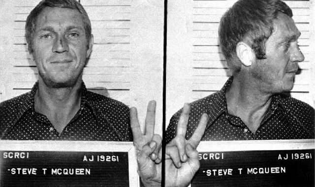 The Anchorage Daily News, in an article on their Alaska State Trooper Museum, writes: “Historical photographs tell many of the stories. They start the minute you walk in the door with the mug shot and arrest record of actor Steve McQueen, who got busted for doing “brodies” in an Oldsmobile Toronado in downtown Anchorage in 1972. McQueen, with a ding on his nose, is looking mighty ragged after his night on the town here, a raggedness exceeded only by his seismographic signature.”