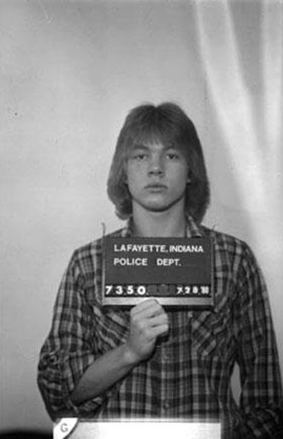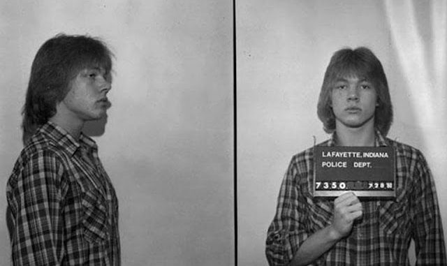 An 18-year-old Axl Rose posed for the Lafayette, Indiana police mug shot in July 1980. This was one of the first of many misdemeanor bust for the future Guns N’ Roses frontman.