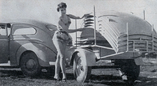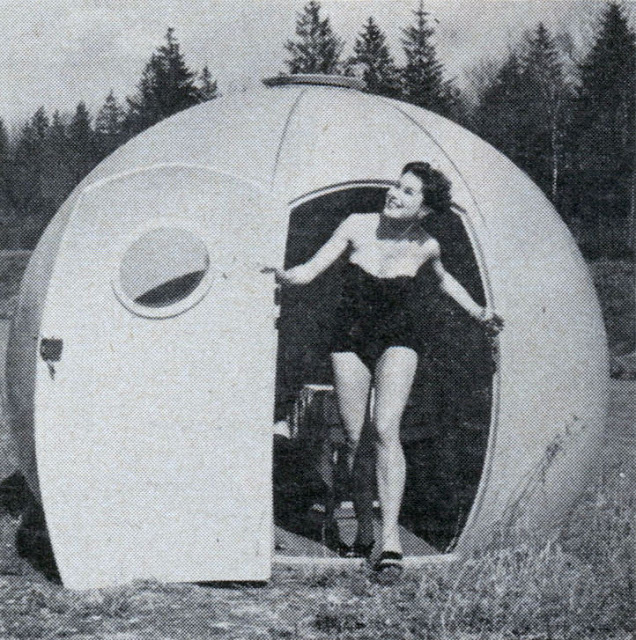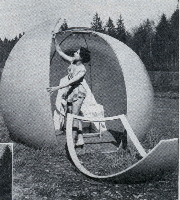 Developed in Germany, a portable shelter for camping or trailer travel looks like a gigantic orange––and peels apart almost like one. The parts of the shelter are shaped much like the segments of an orange peel. One person can fasten the segments together to complete the shelter in 15 minutes.
