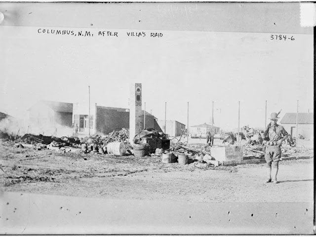 After about two hours of fighting, and a brief pursuit of Villa’s men into Mexico by Major Frank Tompkins, the attacking bands dispersed into the deserts of Chihuahua. Due to the work of a telegraph agent in town, the public heard about the raid almost as it was happening, and within twenty four hours, President Woodrow Wilson decided to send the U.S. Army into Mexico. Known as the Punitive Expedition and led by Brigadier General John J. “Black Jack” Pershing, the goal of the campaign was to capture Pancho Villa and those men responsible for the raid.