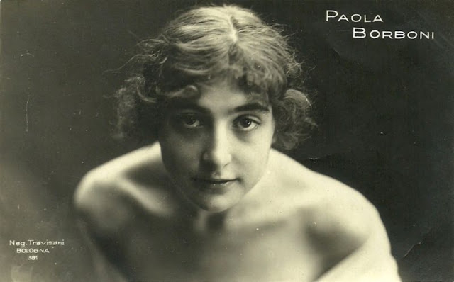 Appearing in several silent films before 1921, Borboni was absent from cinema for some 14 years during which time she made numerous stage appearances. She gained notoriety in 1925 when she appeared topless in a stage performance of Carlo Veneziani’s Alga Marina as a mermaid, exposing her breasts.
