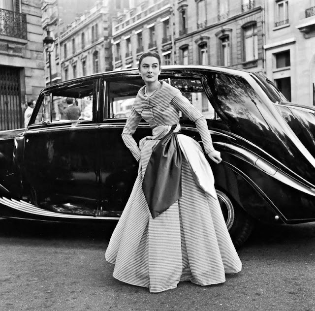 Patricia Prunonosa wearing gown by Jacques Fath, photo by Willy Maywald, Paris, 1950