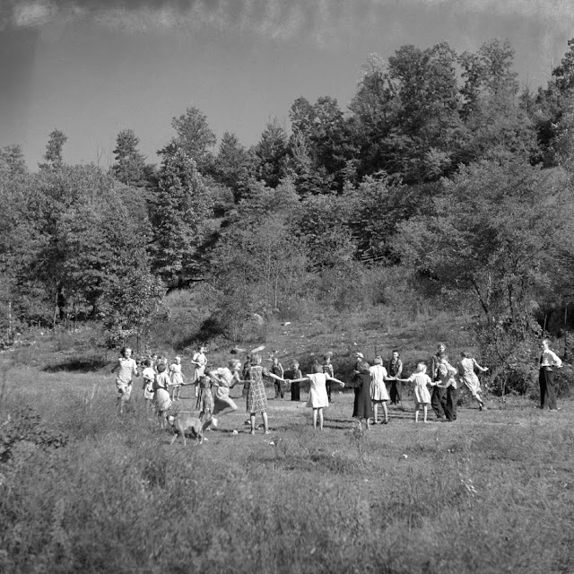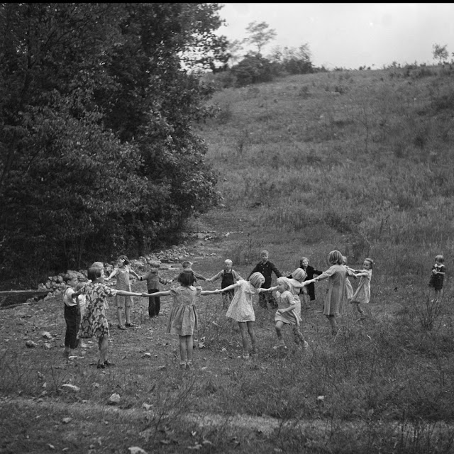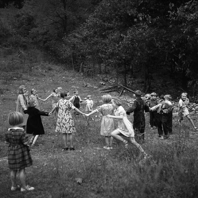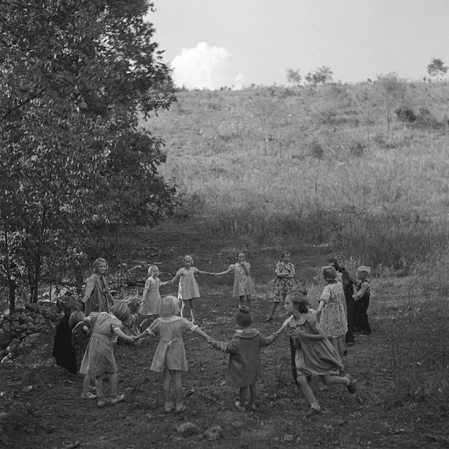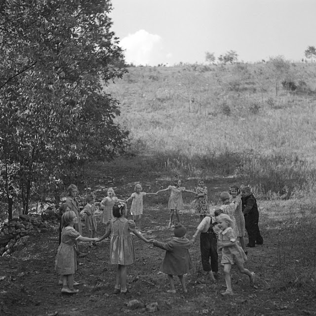 These photographs, captured by Joe Clark and now part of the Clark Family Photo Collection at the University of North Texas, beautifully freezes a moment of pure childhood delight. In the images, a group of children stands in a wide, cheerful circle, their hands linked together in a display of camaraderie. Their faces, glowing with excitement, are turned toward the center where the action unfolds.