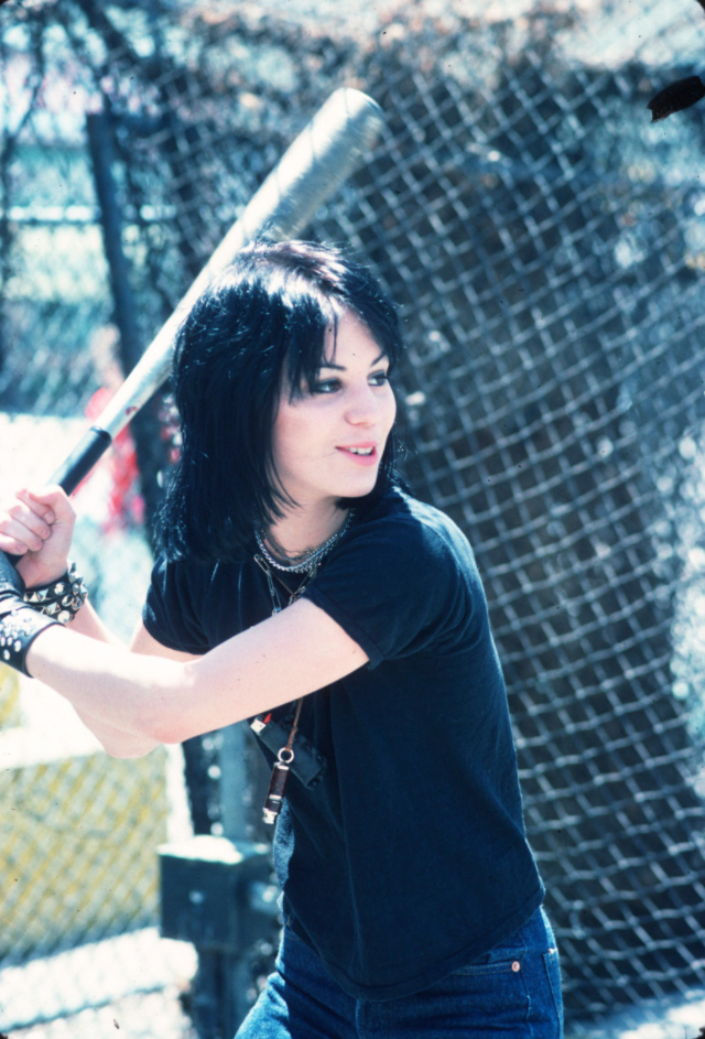 In 1977 photographer Brad Elterman had a chance to take some photographs of Joan Jett practicing her batting in the San Fernando Valley, Los Angeles.