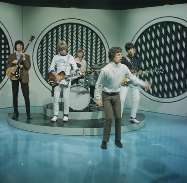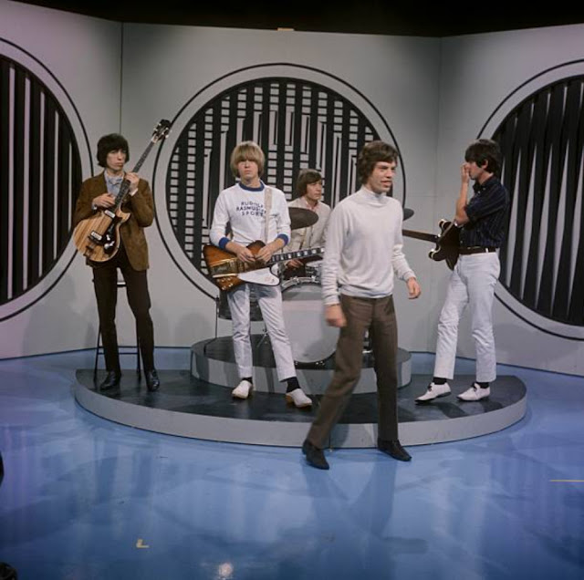 The set on which the Stones were placed, while miming to their single, looked like the veranda of a wild west style saloon; Mick, Keith, Brian, Bill, and Charlie all wore their new dog tooth jackets and looked, by their standards, exceptionally smart, aside from their hair. After they finished their spot, Pete Murray made some remarks about a delegation from the Hairdresser’s Union wanting to see the band because they hadn’t had a haircut since last year.