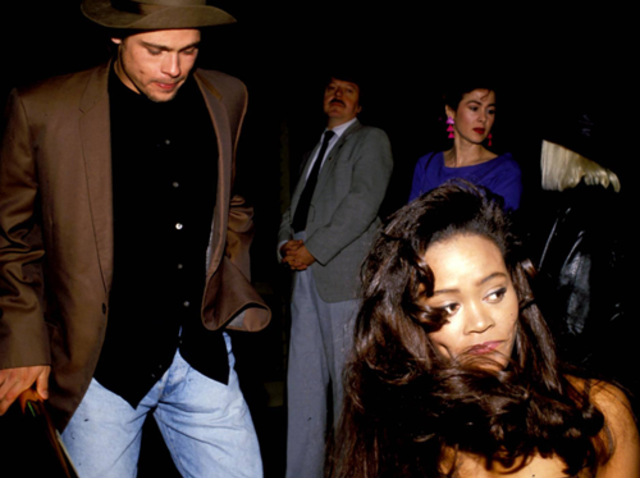 These photos captured moments of American actress and model Robin Givens together with Brad Pitt in 1989.