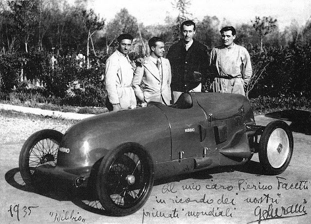 In 1935, VIII Count of Calvenzano of Italy, Giovanni Lurani made the “Nibbio” with a 495 ccm V2 engine by Guzzi and body by Carrozzeria Riva. On November 5, 1935, he set land speed records for the I class (350 to 500 ccm engines) on the Autostrada between Firenze and Lucca, on the stretch between Autopaschio and Lucca. It became the first 500cc engined car to break the 100mph barrier.